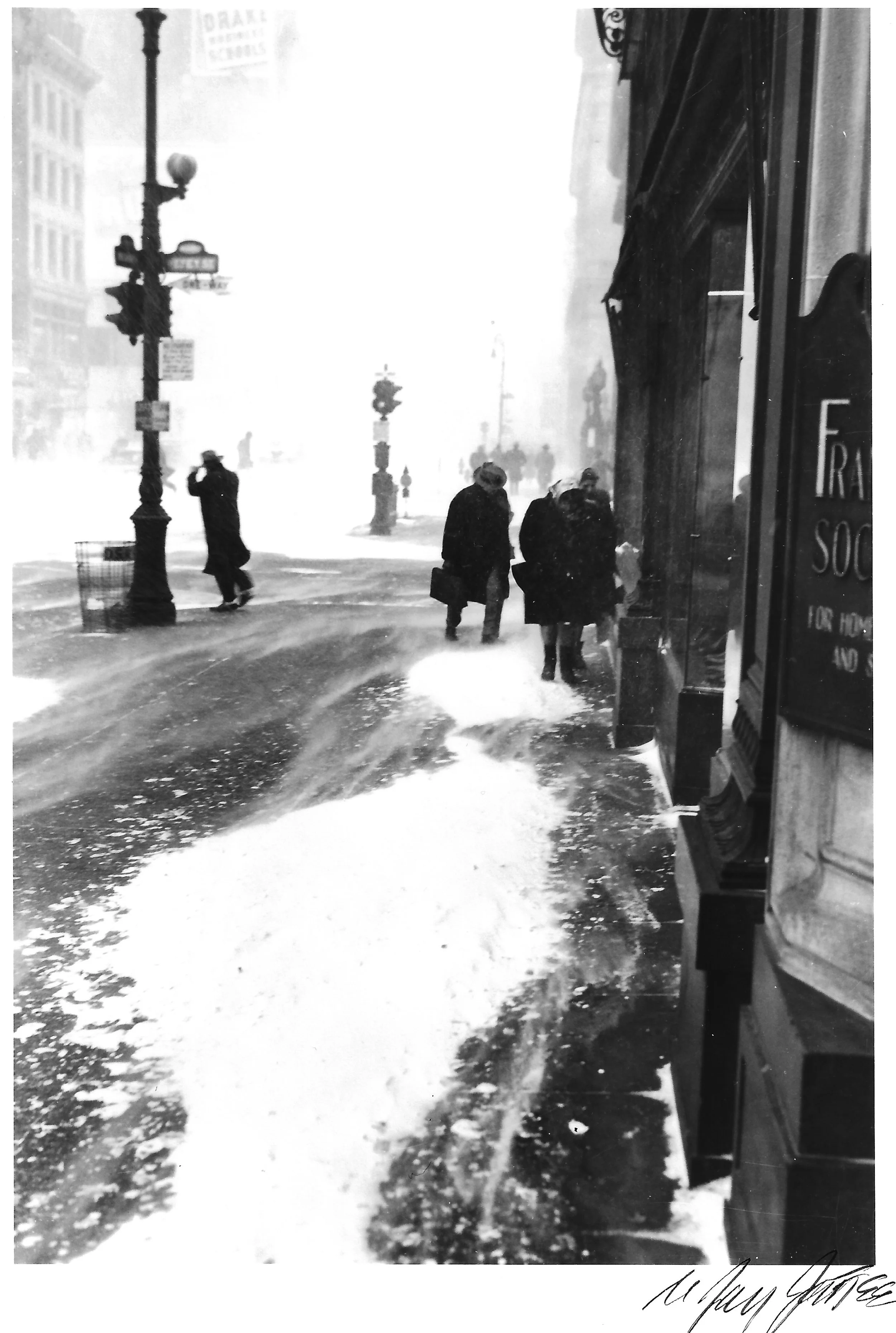 While he was looking through my photographs, Steichen put several prints aside. He chose three, asking if he could keep them for further consideration, and I told him he could. Two of the prints were Bryant Park and Two Women. The third was Snowstorm, an early print I made when I was on my way to Sid Grossman’s class, during a snowstorm in New York City.